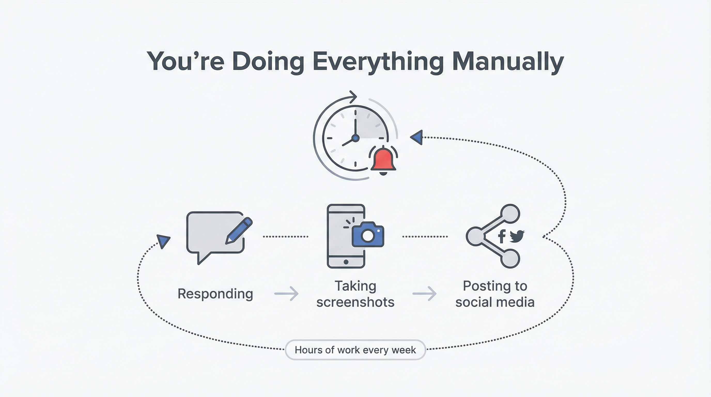 Replying, screenshotting, posting to social media. Hours every week with no real growth.